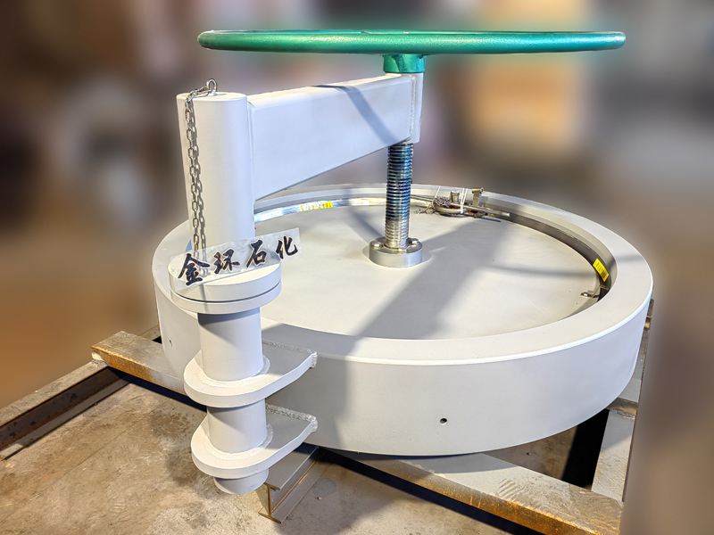 快開盲板是用于壓力管道或壓力容器的圓形開口上的一種機(jī)械裝置。一般由筒體法蘭、頭蓋、勾圈或卡箍、密封圈、安全聯(lián)鎖機(jī)構(gòu)、開閉機(jī)構(gòu)、轉(zhuǎn)臂及短節(jié)(需要時(shí))等部件構(gòu)成。